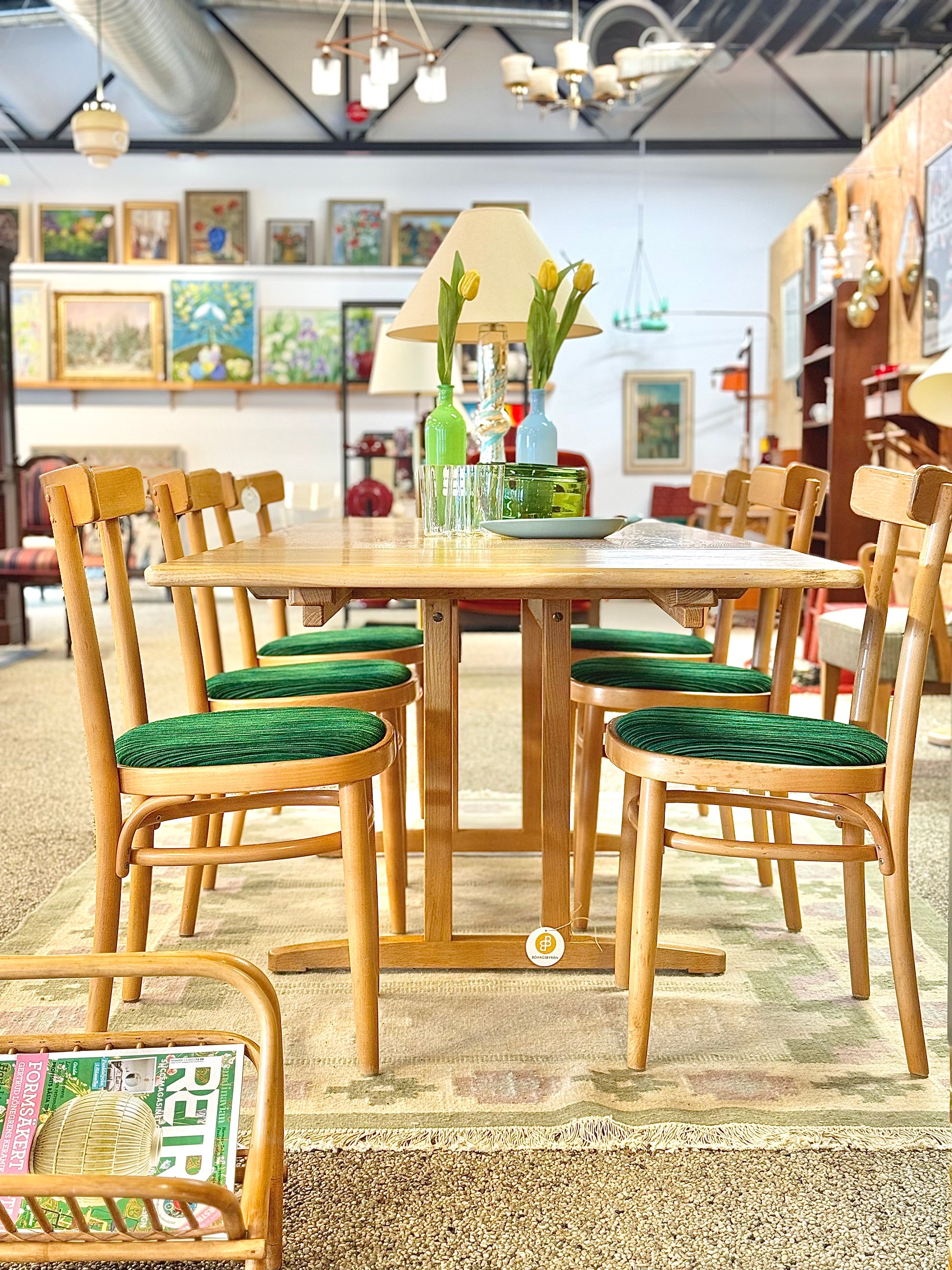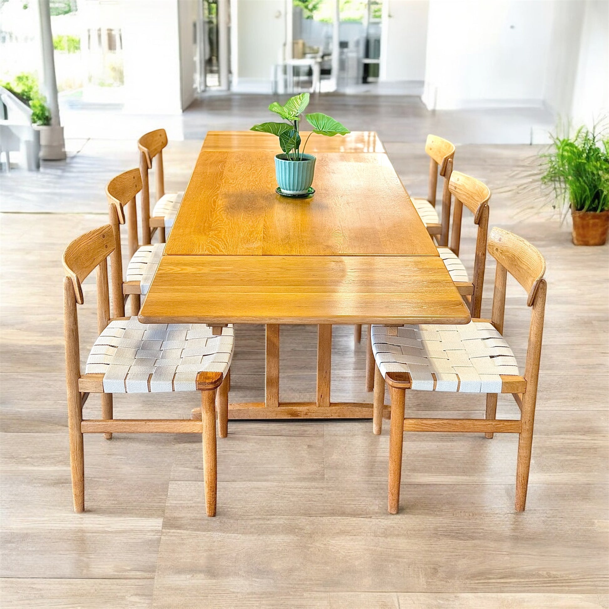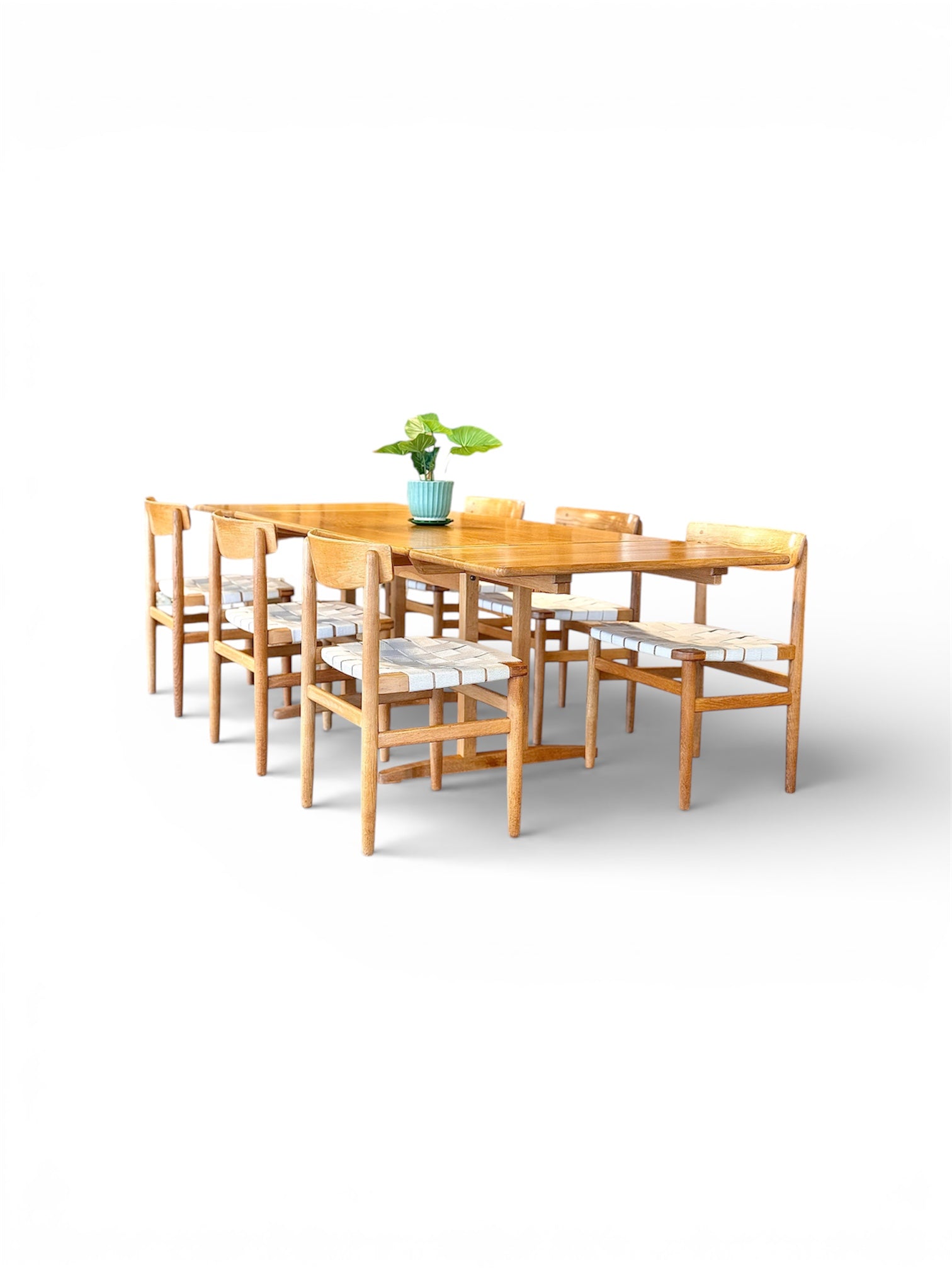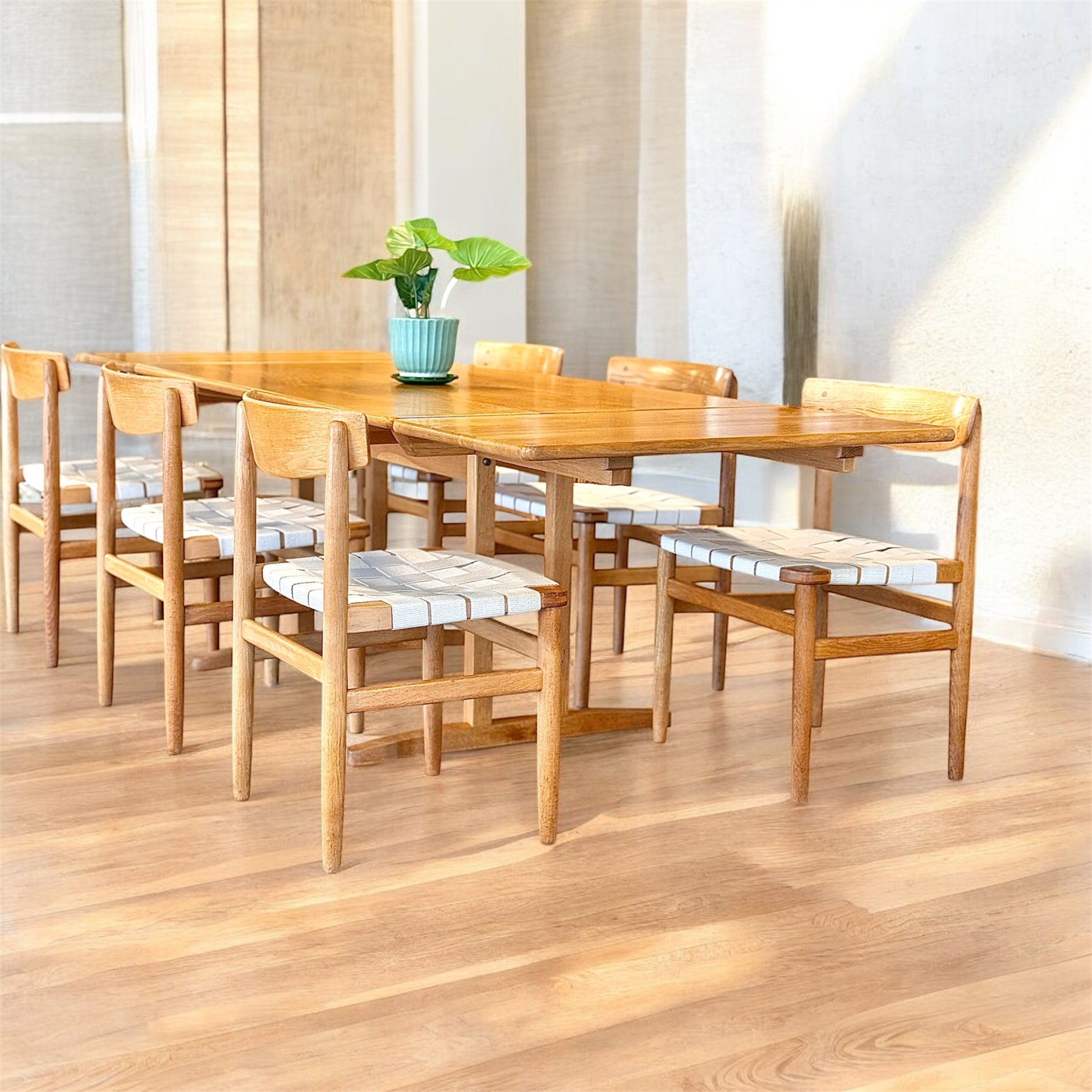 Vackert och ikoniskt matbord i Shaker-modell av Børge Mogensen. Fint vintageskick men med spår av användning.